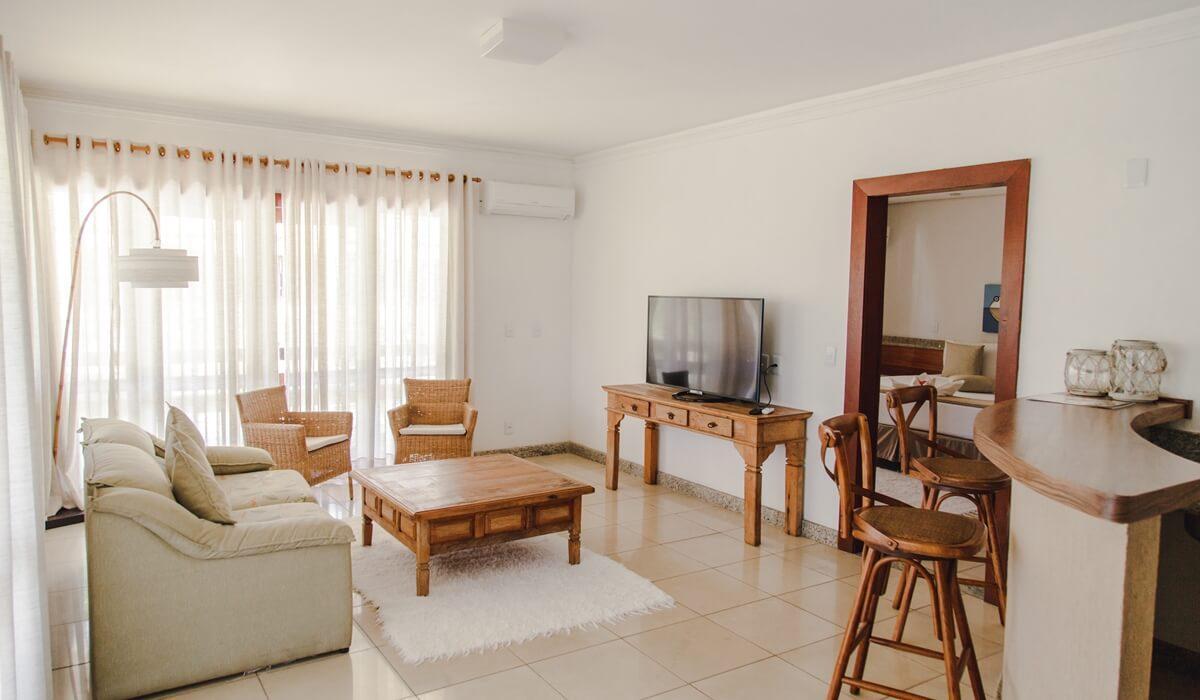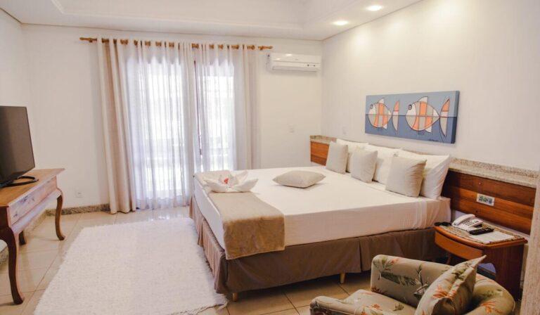 Amplas, confortáveis e elegantes. As acomodações Suíte Master contemplam suas férias com uma privilegiada vista para o mar, além de convidativa varanda em “L”. Ideal para ocasiões especiais como lua de mel e datas comemorativas. Elas acomodam um casal com até um bebê. Acomodam até 5 pessoas.