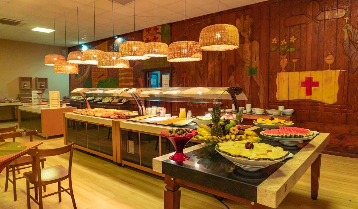 Começar o dia e desfrutar das delícias da Bahia não tem preço. Para aproveitar as atividades de lazer do Resort e curtir as férias em Porto Seguro, é necessário um café da manhã bem reforçado. Em nosso buffet, temos à sua disposição uma variedade de opções com bolos, frutas, pães e a tradicional tapioca recheada.